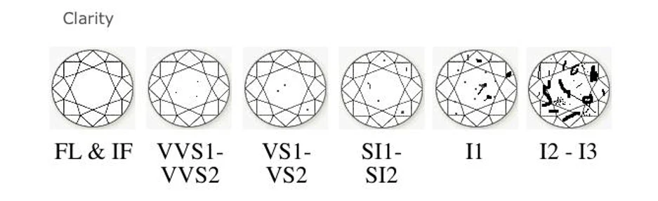 Clarity: All diamonds contain imperfections. The very best, and rarest, clarity is Internally Flawless (IF). Because many inclusions are not visible to the naked eye, diamonds are graded under 10x magnification.